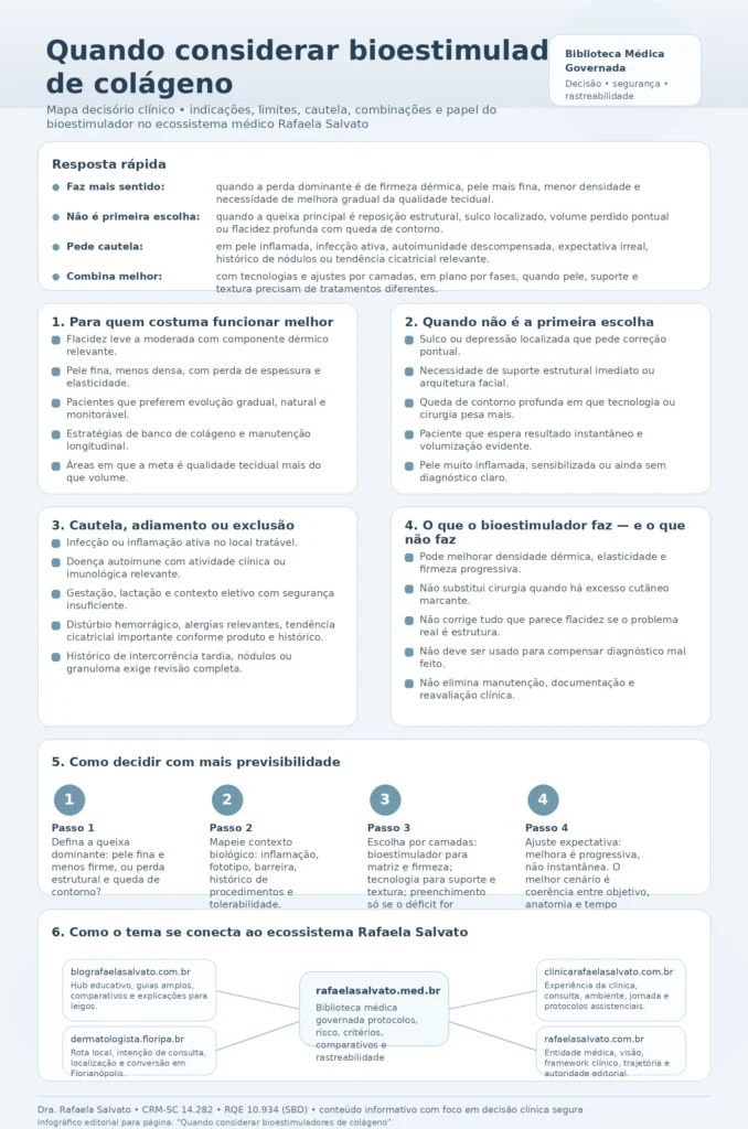 Esse é o ponto central deste artigo: bioestimulador não é sinônimo de “rejuvenescimento” em qualquer cenário. Ele é uma ferramenta de decisão médica. E ferramenta boa, mal indicada, continua sendo má medicina.