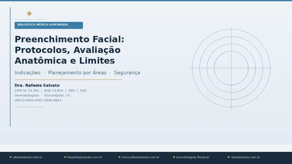 O preenchimento facial com ácido hialurônico é um dos procedimentos mais realizados em dermatologia estética, mas sua qualidade depende inteiramente do planejamento médico que o antecede. Trata-se de uma intervenção injetável que repõe volume, redefine contornos e melhora proporções faciais por meio de géis biocompatíveis aplicados em pontos estratégicos da face. A segurança e a naturalidade do resultado estão diretamente ligadas à avaliação anatômica individualizada, ao domínio da técnica de injeção e à compreensão precisa das indicações, contraindicações e limites de cada região tratada. Este protocolo reúne o raciocínio clínico necessário para decisões seguras.